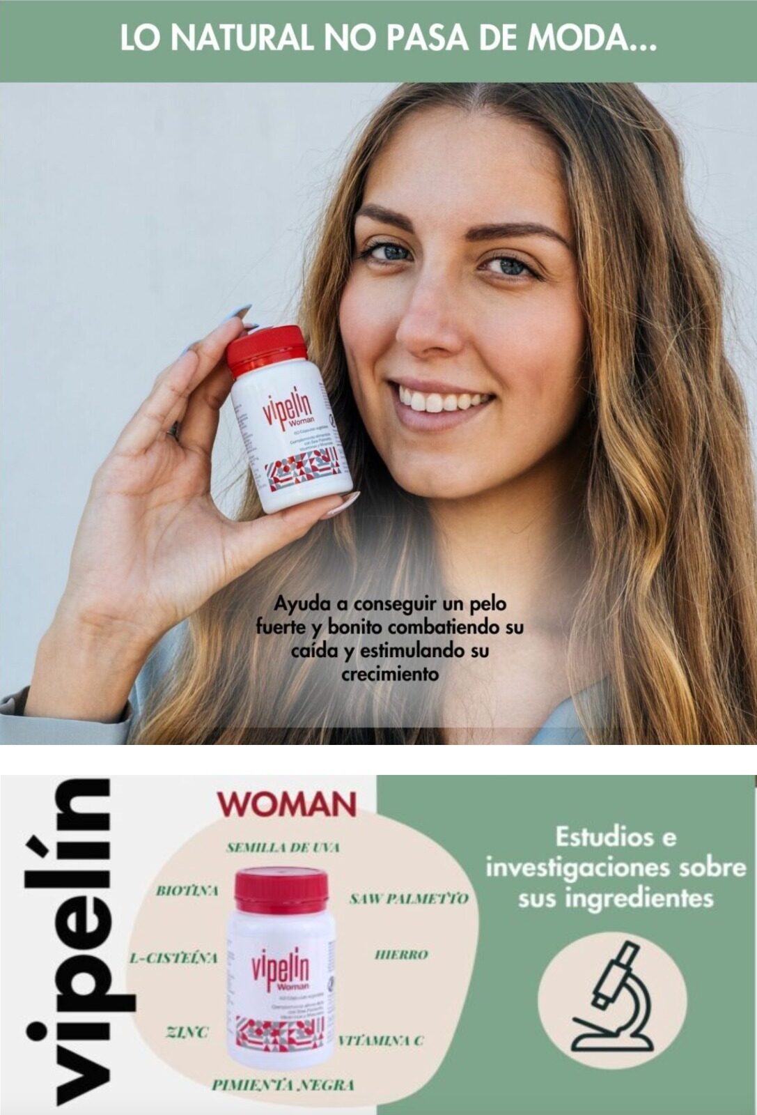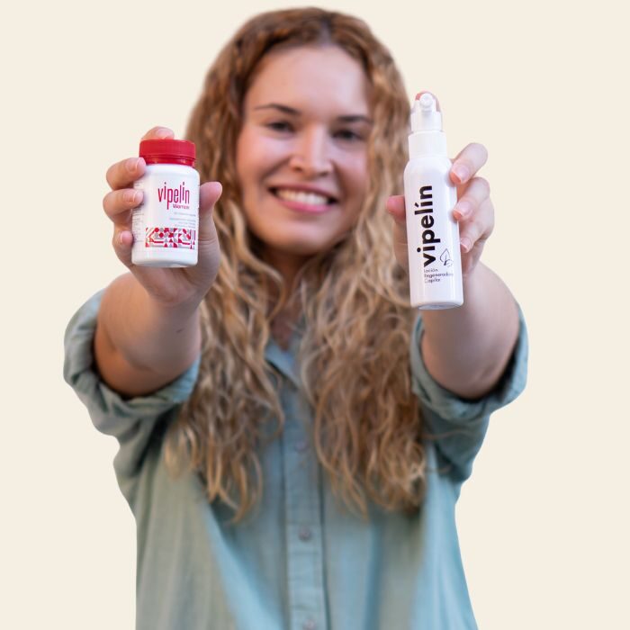 Me desesperaba ver mi pelo en la almohada y en la ducha todos los días, además tengo pelo largo y eso hacia que aún lo viera más.Desde que uso Vipelin Woman y su loción , eso ha cambiado. Ya no veo tanto cabello y no me rallo .