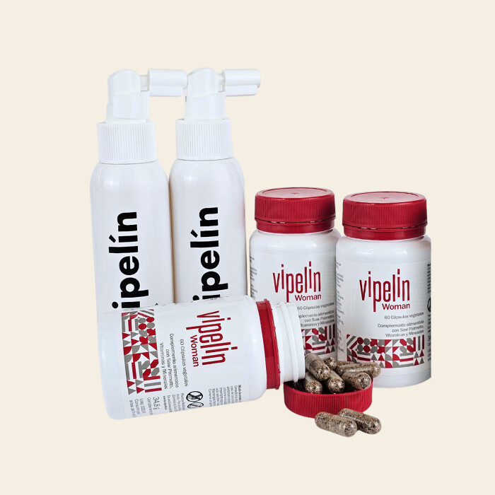 Vipelín Woman está indicado para el cuidar tu cuero cabelludo y como tratamiento frente a alopecia en la mujer, más concretamente durante su edad fértil. Los cambios experimentados en el organismo durante la menstruación a menudo provocan desarreglos hormonales y deficiencias nutricionales que pueden comprometer la salud capilar